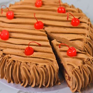 Απλώνουμε όλη την γέμιση αφήνοντας 1 εκ κενό περιμετρικά. Πασπαλίζουμε με καραμελωμένο αμύγδαλο. Φυλάμε λίγο και για την διακόσμηση.