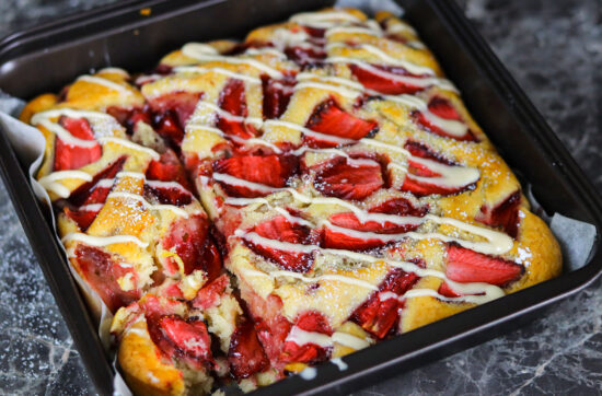 Ένα πανεύκολο κέικ χωρίς μίξερ με λίγες κινήσεις αλλά και το αγαπημένο φρούτο, τις φράουλες! Όπου και να τις βάλεις…