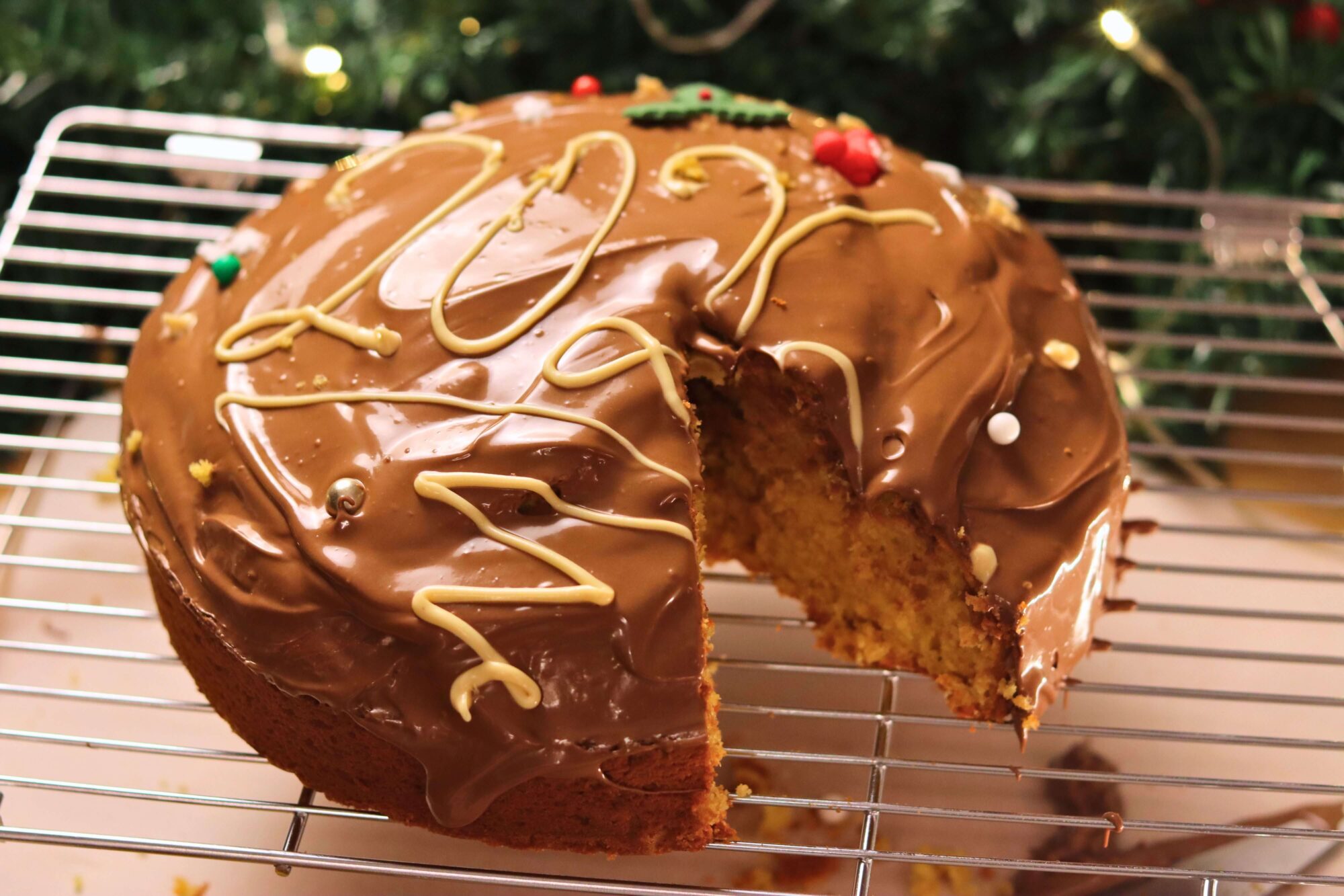 Απλώνουμε πάνω από την βασιλόπιτα και με λίγη λευκή σοκολάτα διακοσμούμε όπως θέλουμε.