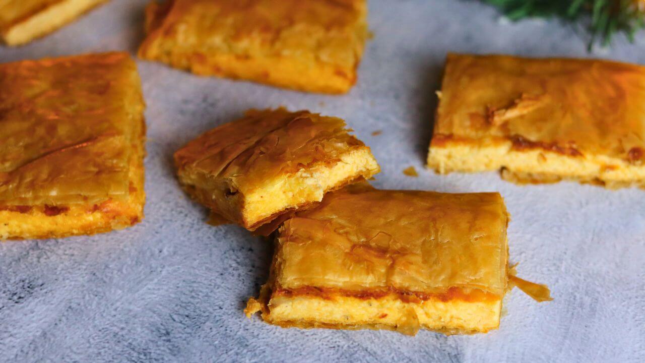 Συνεχίζουμε βάζοντας σταυρωτά 2 ακόμη φύλλα ώστε να καλύψουν όλη την επιφάνεια του ταψιού.