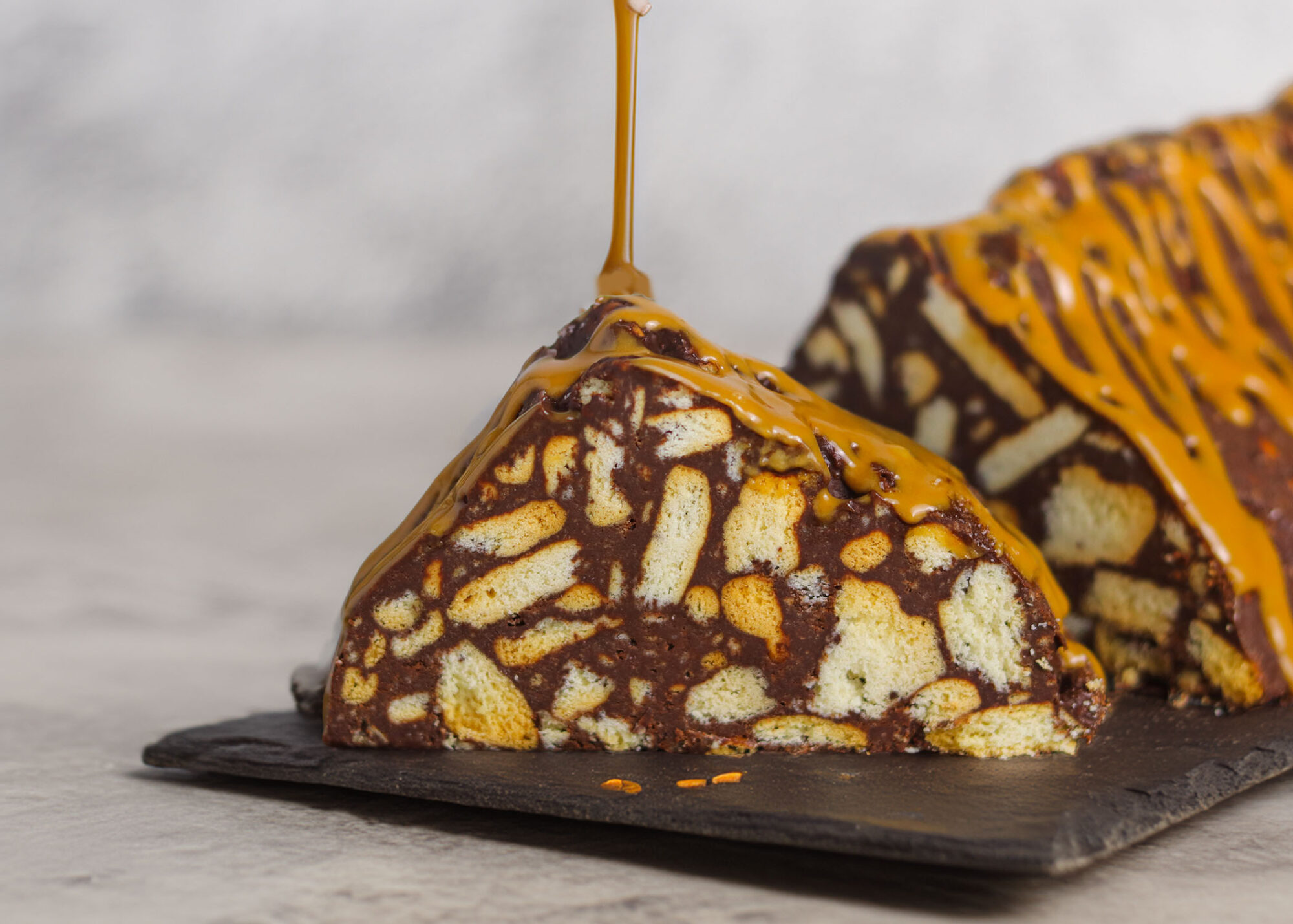 Σε ένα αντικολλητικό χαρτί στήνεις κατα μήκος το μείγμα σοκολάτας-μπισκότου.